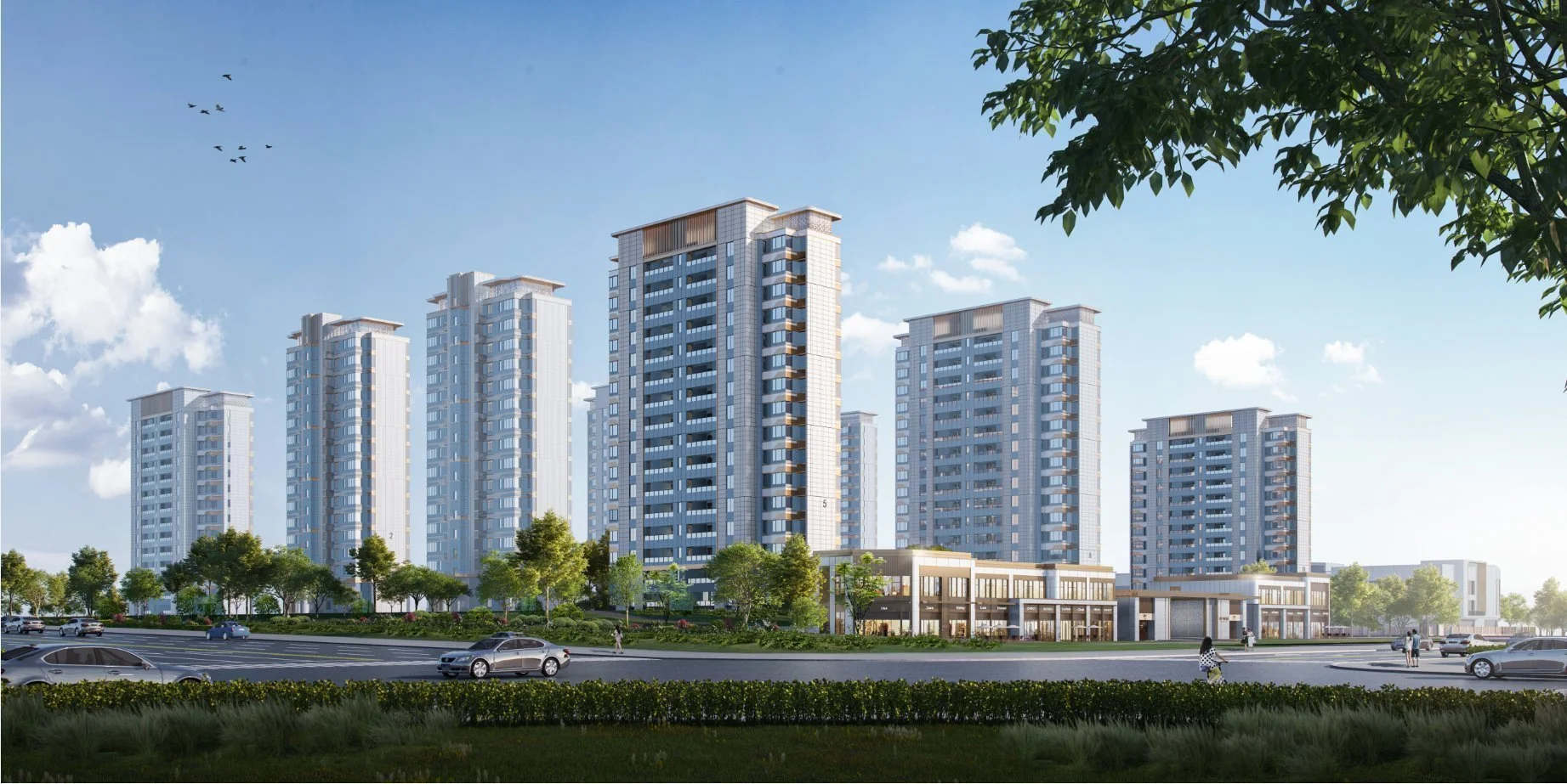 商业配套齐全,满足全龄段消费需求。高新银泰城、砂之船奥特莱斯两大商业地标环绕左右,集购物、餐饮、娱乐于一体,轻松开启都市精致生活。项目自身还规划建设滨水商业街与睦邻中心,引入便利店、生鲜超市、咖啡馆、儿童培训等多元业态,打造“下楼即达”的便捷消费场景。未来社区内部还将设置共享阅读中心、多功能会客厅等功能空间,增强邻里互动,提升生活幸福感。